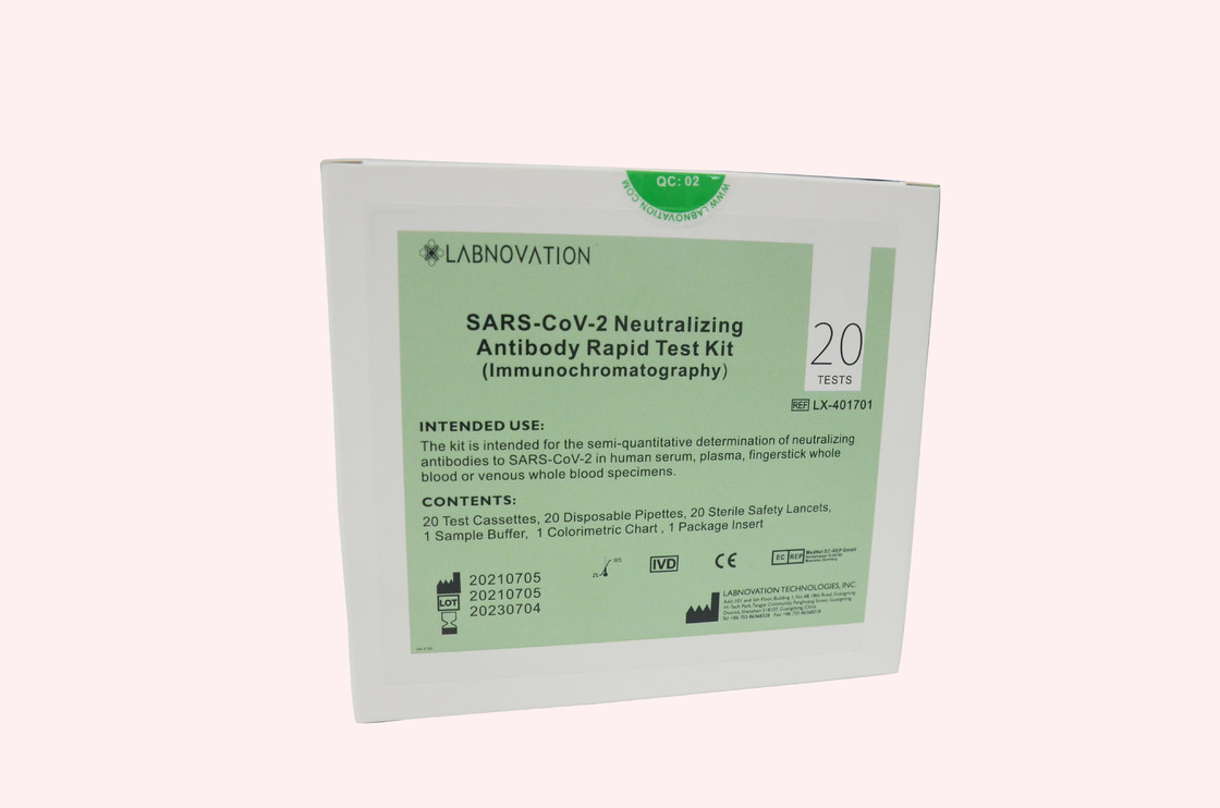 Die neutralisierende schnelle Test-Ausrüstung des Antikörper-SARS-COV-2 ist ein seitlicher Fluss Immunoassay, der für die semiquantitative Bestimmung von neutralisierenden Antikörpern bestimmt ist (erwischt), zu SARS-COV-2, die die Interaktion zwischen dem Empfängerschwergängigkeitsgebiet (RBD) des Virenspitzenglucoproteids mit dem Oberflächenrezeptor der Zellen ACE2 im menschlichen Serum, Plasma blockieren (EDTA und Natriumcitrat), Vollblutexemplare. Der Test ist beabsichtigter Gebrauch als Hilfe in der Bestimmung von Einzelpersonen mit einer anpassungsfähigen Immunreaktion zu SARS-COV-2, in der neuen Anzeige oder in der Erstinfektion oder in der Unterstützung in der Bewertung der Wirksamkeit der Impfklinischen studien und der Massenschutzimpfung.